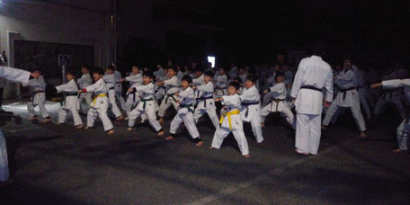 神社につくのは新年を迎える直前の午前0時前。参加者はもちろん幼年から大人まで、寒い中必死に神社まで走り初詣をして道場まで帰ります。道場では保護者の皆さんがつくってくれたお雑煮が待っています。お雑煮を食べている時は最高の笑顔です。50年続く地域でも名物の行事です。